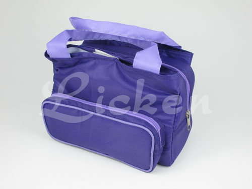 Specification: - 10'' x 5'' x 6''- Front zippered pocket with gusset, two velcro split compartments and one large main zippered compartment- Two tote straps