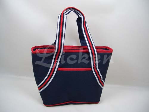 Specification: - 9-1/2'' x 9'' x 5-1/2''- Front small open pocket and one large main zippered compartment- Two tote straps