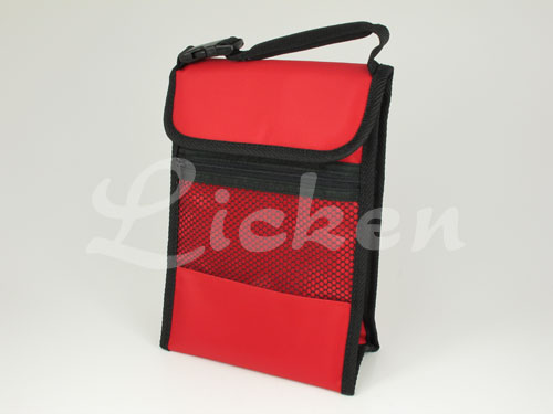 Specification: - 7'' x 10'' with 4'' gusset- Front zippered mesh pocket- Velcro flap closure with plastic buckle/padded handle