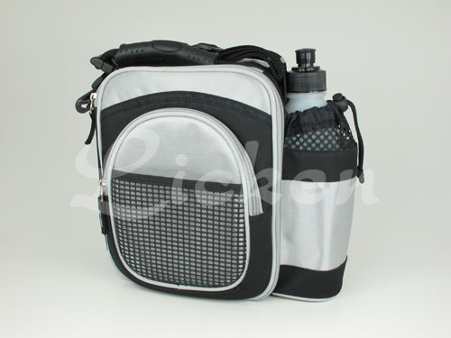 Specification: - 7-1/4'' x 9-1/4'' x 4-1/2''- Front zippered compartment, mesh pocket and one large main zippered compartment- Plastic wrapped handle and removable shoulder strap- Bottle/wrap included (capacity: 20 oz/550ml)