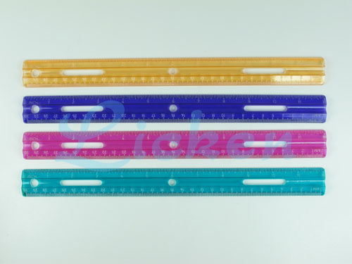Specification: - Plastic ruler with pencil groove- Inches and metric markings- Assorted colors