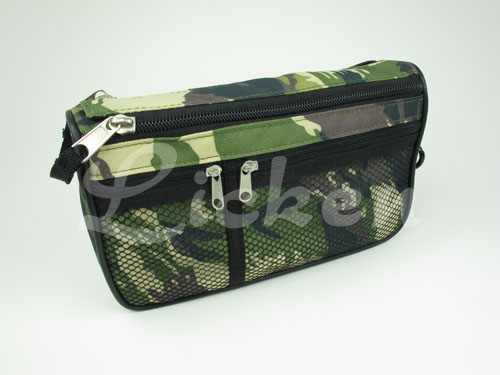 Specification: - 600D polyester 'Camouflage' pattern material - 8-1/2'' x 5'' x 2'' - Two exterior small zipper mesh pockets - With carabiner clip